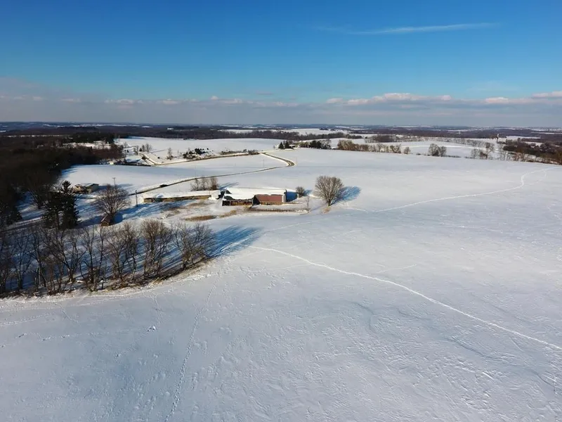 This farm offers 65+/-acres of slight rolling tillable ground in predominantly Newglaris and Dodgeville silt loam soil types. Each field is easily accessible by large equipment so no need to worry about getting your combine up a narrow woods road. At the rear of the parcel, approximately 15 wooded acres flow from the ridge to a shallow valley offering an opportunity to waylay a whitetail or turkey. Across the corner of this woodlot flows the headwaters of Baker Creek which find their way into the nearby Blackhawk lake.