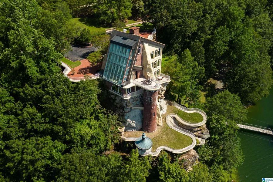 The Castle at Smith Lake, the iconic lakeside residence that embodies luxury and exclusivity. Built in 1980, this extraordinary gated home offers unparalleled 180' views and a sense of privacy that only The Castle can provide. The two story solarium captivates you with stunning natural sunlight throughout the day. The open kitchen and family room showcases custom architectural details, including one of the three fireplaces, and stone staircase. Capture more views from multiple open decks, grass landings, gazebo, and grilling patio which provides multiple areas for relaxation and entertainment. Indulge in the ultimate family lakeside experience with a boat dock, fish house, four boat slips with two lifts. The Castle also includes an expansive 8,000sqft workshop, with 4 bays, 14x8 garage door, and full RV hookup. The Castle can be purchased with 6+/- acres, with the option to acquire additional waterfront and wooded acres. Call today to schedule a private tour of this one of a kind home.