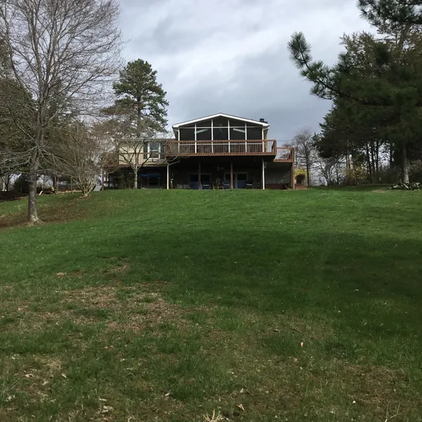 181' of waterfront property! 2 stationary docks with floaters, riprap shoreline, very gentle slope from house to lake. Great views from the cathedral screened in porch. Very clean 3BR, 2BA vinyl sided ranch home has a kitchen with lots of cabinetry, dining area, LR w/access to screened porch. Basement has a FR w/fp, that walks out to patio facing the lake. Brand new heat pump for heat and air, just installed 4/18. House is located on a cul de sac that has lake views also. Perfect place to raise a family.