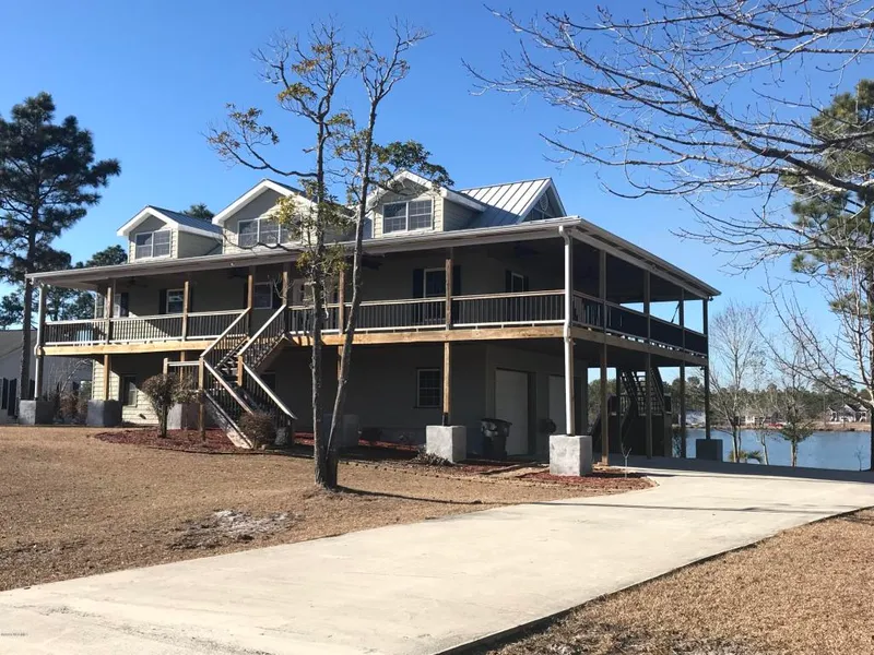 This gorgeous, custom lakefront home in Boiling Spring Lakes encompasses double lots & boasts 2,814 sq. ft.. With 3 bedrooms, 3 1/2 baths, walk in closets, wet bar, 3 bonus rooms it's the perfect setting for fun filled days swimming, boating, fishing, bar-b-queuing & playing w/ loved ones. Need space? It has a 1,568 square foot garage! Enjoy outdoors with a dock, third floor deck and wrap around porches to lay back in the hammock and enjoy the beautiful views. The area offers a boat ramp on the Big Lake, swimming areas, 2 community playgrounds, 18 hole golf course, nature conservancy across the street with walking trails, tennis court, basketball court, community building & fitness center within walking distance. 10-15 minutes from the beach... location, location, location!