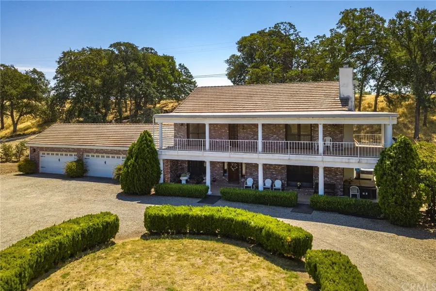 Fresh exterior paint on this gorgeous home! Looking for a property that offers 5.95 acres with a creek that runs through part of the property, a pond, barn/ stables (24x38), storage building (30x50), gazebo and beautiful California Poppies blooming? This has that and more!! This home offers a spacious 3,465 sq ft with living room, great room and play room, with indoor laundry, updated kitchen with rich oak cabinets and granite counters. The master bedroom is quite large and the master bath offers a jetted tub. One of the favorite features of the home is the wrap around porch/ balcony upstairs that gives you a lovely place to sit and enjoy looking out over your property, admiring the grand Oak tree and the sunsets! Come enjoy this very special home. Additional bonus is the 4-car attached garage and private gated entrance to the property.