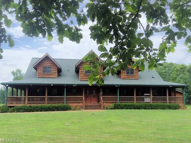 AMAZING PRICE: Alluring, built to last, this could be your dream come true! Picture yourself relaxing in front of a crackling fire, surrounded by warm, honey-hued logs on a crisp autumn day. Catch the sunset from the covered wrap around porch. Surrounded by the natural beauty of green trees, a peaceful, inviting retreat hidden from view down a 900' driveway. YOU WILL LOVE IT HERE! Healthy, relaxing living away from smog, pollution, and noisy fast paced life. One-owner, custom built, superiorly crafted, 7312 sq.ft. finished living space, wood beamed vaulted ceilings, maple hardwood floors, well-kept. 12inch Swedish Cope Red Pine logs. Kitchen: Custom Amish-built curly-maple cabinets, pantry, antique look stove w/LP-gas stovetop ("Cooks Delight" over $5000). Stainless appliances: fridge $5627, NEW dishwasher 9/18. Breakfast nook plus HUGE Grand Dining Room w/21x5ft table seats 24! Picturesque log staircase leads to huge, restful, inviting master bedroom, spacious closets, loft, balcony, body-spray-showers, eave storage. Living Room (new carpet 4/2018) and Library (built in shelves) share see thru vent-free LP fireplace. 1st floor: Laundry (Washer/Dryer purch. 4/17) Enchanting, rustic antler chandeliers thru-out. Oversized 3-car detached garage w/attic storage, fenced area behind. Security system, perimeter monitors/cameras. Dual Heat Pump/AC units w/programmable thermostats. Enjoy the tranquility and beauty of nature, while you relax, unwind, and leave your stress behind.