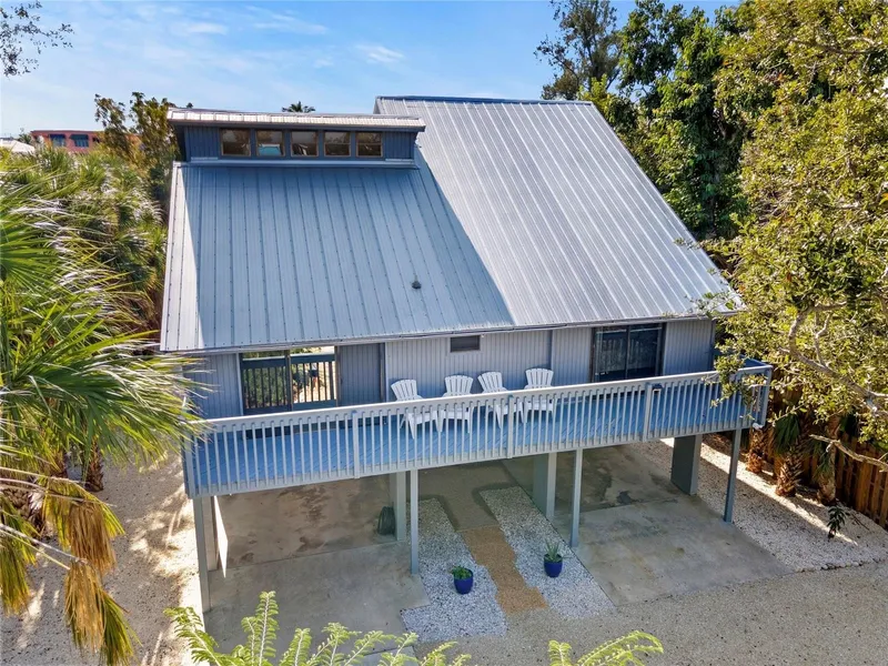 Tucked away in the highly sought-after Palm Island neighborhood, 356 Island Circle is a rare and enchanting elevated treehouse-style home that offers the perfect blend of rustic charm and island living. Nestled among the lush tropical landscape and overlooking the serene Grand Canal, this property is a private retreat that embodies tranquility and a deep connection with nature.