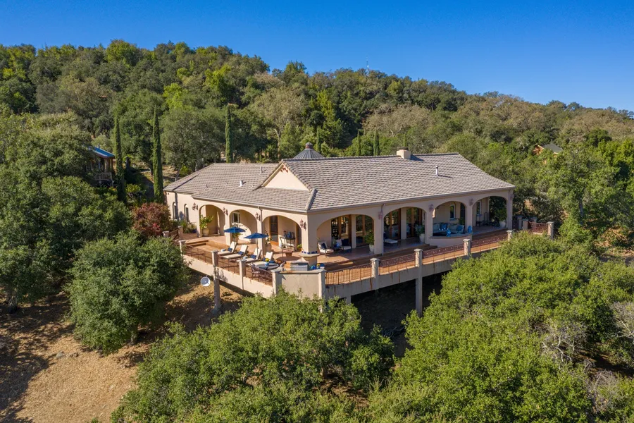 Discover La Bella Vista, a private European Farmhouse style estate that sits on 20 acres in the heart of wine country on the desirable Westside of Paso Robles, just 15 minutes from Paso downtown and 20 minutes from the Pacific Ocean. La Bella Vista sits privately behind gates atop a hill and boasts breathtaking panoramic views from almost every window and door. The main residence features 3,000 +/- sq. ft., 2 Master Suites, Office with custom built-in cabinetry, Open Floor plan with stone fireplace and a gourmets kitchen that includes multiple sinks, large island, bar area, breakfast eating area, Dacor and Subzero appliances. Enjoy the mild weather year round from the covered wraparound decks, which include a built-in BBQ and prep area right off the kitchen. The Guest Home Studio features 1200+/- sq. ft. and sits privately away from the main residence, includes a full kitchen and bathroom. While the Wine Cellar is uniquely built into Adelaide stone and can hold up to 500 +/- bottles, it features a custom kitchenette with wine cooler, dishwasher, warming drawers to make entertaining a breeze. Enjoy the peaceful serene setting and incredible breathtaking views of this magnificent Wine Country property! See the amenities list and property video in attachments!
