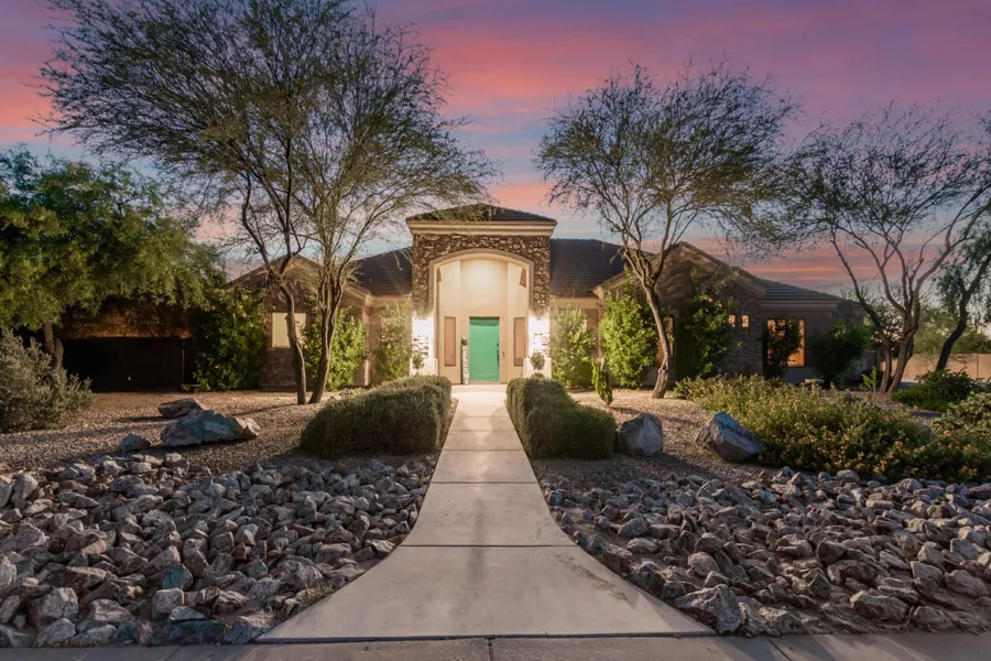 Introducing this stunning home that offers a 3-car garage, RV gate, and charming stone accents on the exterior. Step inside and be captivated by the sheer beauty and meticulous attention to detail. The interior features wood-look flooring, tasteful designer paint, an inviting living room, a formal dining room, and a cozy fireplace in the family room that adds warmth and character. The chef's dream kitchen is a sight to behold with its recessed and pendant lighting, stainless steel appliances, elegant granite countertops, mosaic backsplash, crown-molded cabinets, a pantry for storage, a spacious 2-tiered island with a breakfast bar, and a lovely breakfast nook with a bay window.