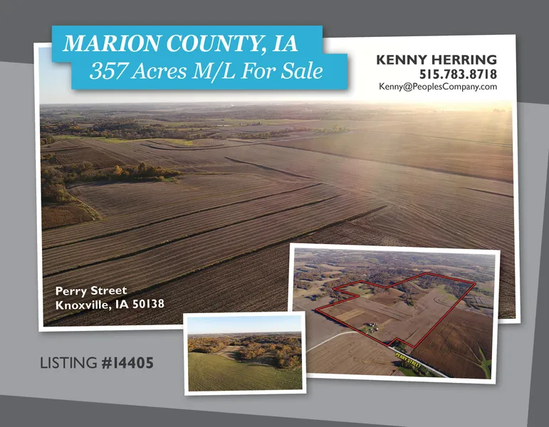 Diverse, Quality Farmland offered for sale in Marion County, IA. This property totals 357 acres m/l of individually distinct components, that when combined, offer a unique opportunity for agriculture, conservation, and recreation. 180 acres m/l of the property is currently in row crop, corn/soybean rotation. Soil types include Haig, Grundy, Pershing and Nira with slopes from zero to 9 percent across most of the tillable acres. Great laying, highly productive land. The farm also has 59.80 acres enrolled in CRP with an annual payment of $11,088 providing additional income as well as wildlife habitat. Interior fencing provides the means to graze livestock on southernmost 80 acres. The farm has a healthy population of deer and turkey as well as upland game birds, both quail and pheasant. A great mix of recreation and income! This great property is located in section 28 of Franklin Township, Marion County, IA.