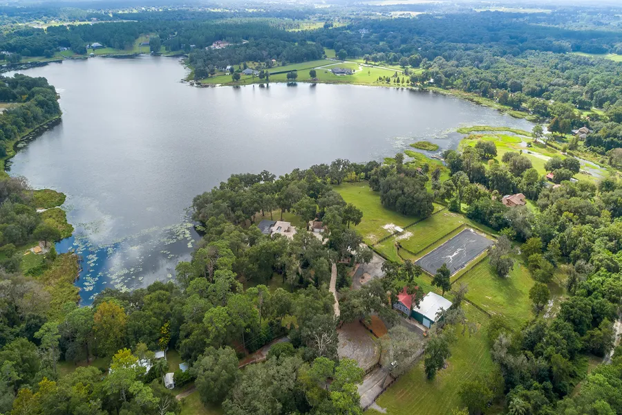 14 acres, 769 feet of spring feed, fish-laden Lake Front family compound! Approximately 45 minutes door to door to Orlando International Airport, Beaches or Disney. This heirloom property is challenging you to Dream BIG! Calling all big boys with big toys! Here is the property you have been looking for! This is true American Freedom! No HOA. So bring your horses, RV, and all the rest of your toys together. Your dream barn, garages and workshop is already here. This could be your true family compound. Equestrian lover's paradise too! A vibrant compound that is situated behind a private gated entry and tucked peacefully away from the road. TWO, yes two separate parcels totaling approximately 14 acres of park-like setting with sweeping stone paver driveway, lush landscaping, stately oaks, multiple paddocks framed by 4-board fencing, outbuildings that could house 25 cars, center aisle barn, Olympic sized Dressage Arena, boathouse and direct frontage on beautiful Lake Seneca! This is a one-of-a-kind, never to be seen again compound is both powerful and unique and the most exciting properties on the market today. The two-story, custom-built home is comfortable yet elegant and will impress with its rustic earth tones that add a sense of Old-World charm and mystic to indoor and outdoor spaces. Handsome interiors include beautiful warm and rich wood plank ceilings and floors, multiple stone and wood fireplaces, foyer fossil stone wall entry and a bright and cheery sun room overlooking the pool, scenic back yard and shimmering Lake Seneca where you can enjoy boating, fishing and every recreational water sports. The newer and remodeled baker's gourmet center island kitchen is stunning with herring bone wood look tile flooring, Quartz countertops, Schuler soft close cabinetry, large farmhouse sink and stainless-steel appliances. The master suite overlooks the peaceful lake and features a gorgeous newer bath with travertine walls and flooring, walk-in double shower and furniture vanity with granite countertops. The lower pool side level is perfect for an in-law suite with family room, bedroom, bath and large pub bar with three wine refrigerators, hide away sink and granite countertops. Perfect for large scale entertaining with its multiple porches, outdoor decks, inground pool and the 36 by 32- foot grand gathering gazebo with its floor to ceiling stone fireplace and summer kitchen. Outside, you are surrounded by multiple gardens bursting with exotic flowers, mature trees, screen enclosed gazebo and meandering walkways to enjoy the exceptional natural beauty which are the hallmarks of this waterfront equestrian estate. Fenced and cross fenced with multiple paddocks, Olympic sized Dressage Arena and a 1,617 SF 4-stall center aisle barn with grooming stations and air-conditioned tack room. This property features an abundance of auxiliary space that could house a fleet of vehicles for your complete car or boat collection. This includes the 720 SF attached garage, 675 SF 2-car detached garage, 1,807 SF 8-Car two story garage under heat and air and an incredible detached 2,483 SF 12-car steel insulated RV garage with two roll up, pull through doors. This is a RV, car or boat collector's dream home! This is a rare and unique opportunity to own a unique mix of plush pastoral acreage on two separate parcels with direct frontage on the lake and all just minutes to town, shopping and major highways. Please view the virtual tour and 3D Matterport tour.