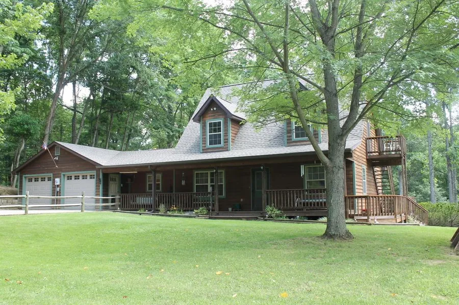 Gorgeous setting for custom home--Approx. 28.5 acres (subject to survey). Lots of space on 3 levels of living area. Eat-in kitchen has bkfst bar, pantry. Large main level FBA (14x9), walk in closet in master. Downstairs has a family room/rec room combo with a great wet bar and a spot waiting for your pool table. FBA downstairs, laundry & storage. Upper BR with sitting area, half bath & undereave closet. Parklike ground with potential lakesite, pastures, woods. Lots of deck/porch space. Hi-Speed Internet available!