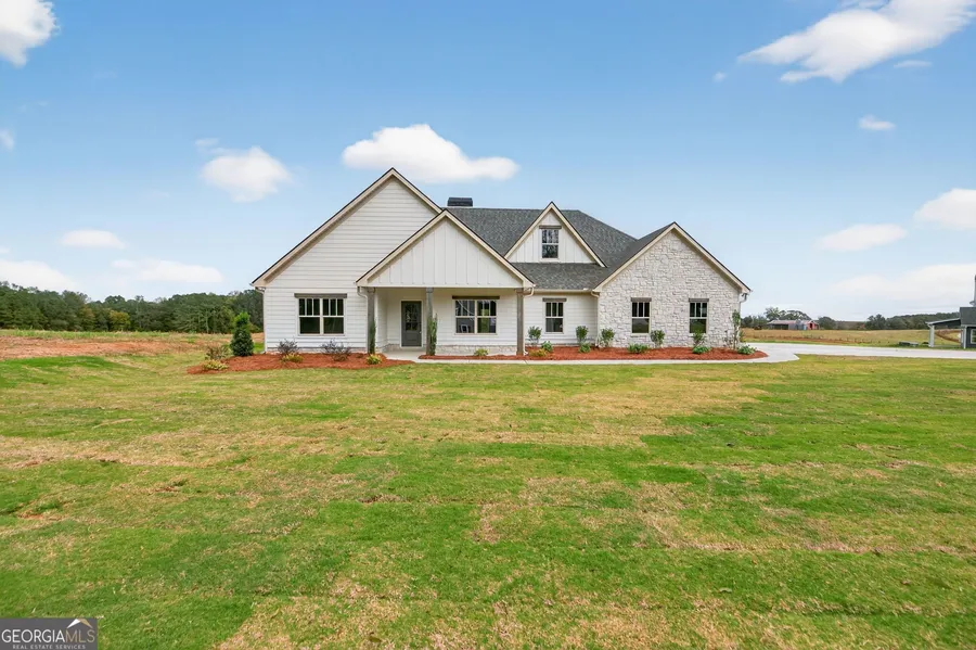LOCATION - LOCATION - LOCATION - Fall in LOVE with this lovely modified RANCH home with 4 Bedrooms and 3 Full Bathrooms (including the Owner's Suite) on the MAIN LEVEL and 1 bedroom and 1 full bathroom upstairs! You will absolutely love living on this lovely 5 acre Tract in a desirable area of North Heard County with outstanding schools and a country setting. Upgraded finishes throughout will blow you away, from the Wood Floors, Vaulted Beamed Ceiling in the Owner's Suite to the kitchen cabinets and countertops. Stone and Hardi exterior is on point and there's also a covered back patio to take in the pasture scenery. SMART HOME TECHNOLOGY PKG - Zoned HVAC - High Efficiency Windows and Spray Foam Insulation, plus a 1-2-10 Warranty will put you at ease. Don't let this gem get away!