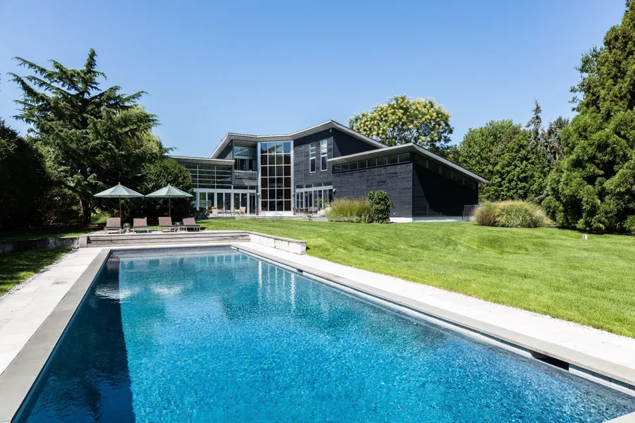 This designer-curated Hamptons retreat offers contemporary luxury and timeless elegance. Architectural ingenuity and inspired design make this Hamptons home truly impressive, immediately ready for elevated entertaining and luxury living. On close to an acre in Water Mill, surrounded by reserves with views, this sophisticated 3-level home has 3,400 +/- sq. ft. of living space, 4 bedrooms, 3 full baths, attached 2-car garage, and heated gunite pool; plus an expansive lower level and room for a pool house. The natural beauty of Eastern and Western exposure overlooking hundreds of acres of preserved land cannot be overstated, and they will remain forever protected. From the exterior, the home strikes a perfect balance between contemporary and traditional style, with dark charcoal cedar siding, a zinc roof, and an aluminum-wrapped steel entry door. Interiors are bright and open, highlighted by slate flooring, double-height ceilings, clerestory windows and walls of glass. Designer details-including premium curated lighting and Palupe wood trim-are seen and felt throughout the home. At the central focal point, is a custom spiral staircase made of steel, bamboo, and tempered wooden banister, which appears to float above a dramatic double-height view of the rear courtyard. On one wing, a custom dual-sided fireplace separates the dining area from the living room, which overlooks acres of bucolic reserves. A wall of windows and 5 sturdy, stay-open glass doors invite the outdoors in, with easy access for dining al fresco and sun lounging in the backyard. Opposite the staircase, the eat-in kitchen matches beauty and performance with professional appliances, granite center island, and custom Bendheim glass cabinets. The first level is completed by a tiled-bath, first floor bedroom, office/den, and access to the attached 2-car garage. Upstairs, find three bedrooms, including the primary, each with double-height ceilings. The ensuite primary is a luxurious haven, wrapped in light and sunset reserve views and equipped with a private balcony patio, wood-burning fireplace, walk-in closet, and ensuite bath with a glass-lined shower, a Japanese soaking tub, water closet, and dual vanity. Additionally, two guestrooms, one overlooking reserve and another with an attached office, share a full bath. The home's L-shape design shields the rear grounds from outside elements-without blocking the sun-creating a calming courtyard with slate patio, 16'x54' heated gunite pool, garden, and a lush lawn dotted with mature specimen trees. Find peace and privacy at home with elevated Hamptons living always close at hand with nearby Water Mill, Bridgehampton, and Sag Harbor Villages with boutique shops and dining - plus, world-famous white sandy ocean beaches.