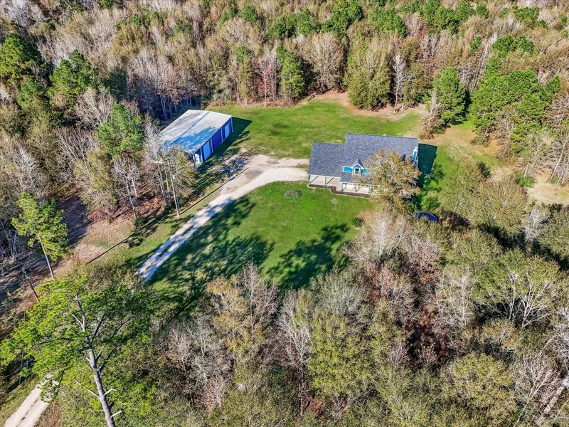 Carved into these forested acres is a well manicured opening dotted with mature trees and shielded from the county road by a wall of forested vegetation. Sitting within this clearing is a 3,384 sqft custom home with 4 beds and 4 baths, and all of the amenities expected in a high quality new build. Sitting across from the home is a color matched custom metal barn fitted with multiple roll up doors, concrete flooring, interior power & lighting, and enough room to store all the equipment needed to manage the property.