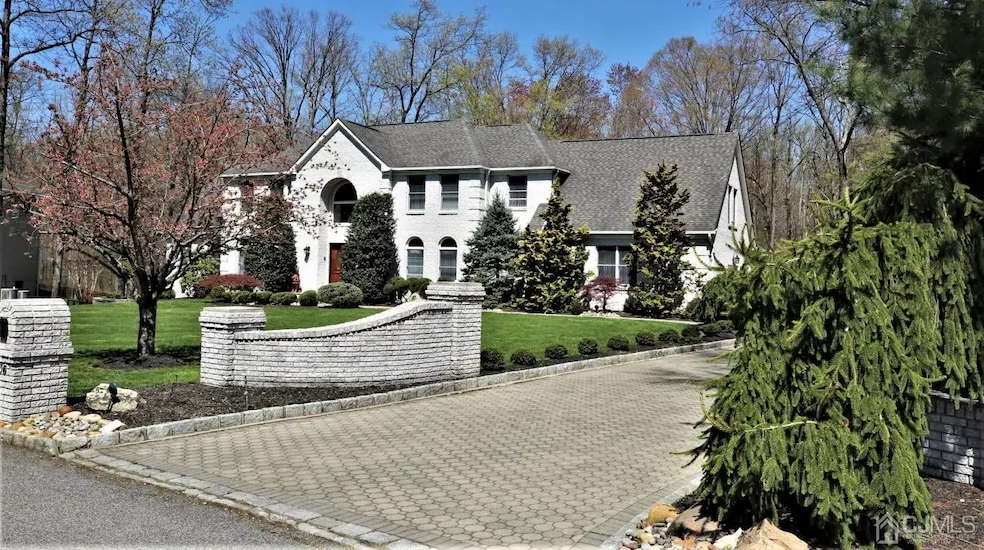 Welcome to this remarkable, brick, 5 bed, 4.5 bath custom-built home located in the desirable Drinking Brook Estates nestled in South Brunswick Twp. This custom was home built on one of the three premier lots. There are many wonderful updates and beautiful decor throughout. Gleaming hardwood flooring throughout the first and second floors. Perfect home for entertaining or spending a quiet night at home with family and friends. Features: double door entry to the bright and airy, two-story foyer with a chandelier; formal dining room and formal living room; sizable conservatory; den/office; 2 story family room with a gas fireplace and a custom mantle; Chef's kitchen with ceramic tile flooring, granite countertops with backsplash, granite top center island, stainless steel appliances, sizable pantry, gas range with hood, custom cabinetry, sunny, delightful breakfast room and a second stairway leading the second floor; convenient 5th bedroom with on suite bath; a powder room and laundry room complete the main level. The second floor is just as noteworthy as the first floor featuring: an oversized primary suite with recessed lighting, an oversized wlk in closet, and a private bath with Jacuzzi and stand-up shower; the 2nd bedroom has a private bath; the 3rd and 4th bedroom share a Jack and Jill Bath. Full basement! Vacation at home with an extraordinary backyard!!! Features: an amazing inground saltwater pool with extensive hardscaping around the pool with pretty pavers, a private area with a hot tub, raised deck, storage shed, BBQ line, and the entire backyard is surrounded by gorgeous mature tree's that offer a ton of privacy and seclusion, yet your location is within a wonderful community setting. Additional features: 3-car garage and driveway parking; front paver wlk and professional landscaping; 3 zone heating and ac; updated lighting throughout and tray ceilings. Close to Princeton and the Route 1 corridor, easy access to the NJ Turnpike, minutes to bus station into New York City, and conveniently located between New York City and Philadelphia. Near restaurants, shopping, and highly sought-after Top rated South Brunswick School District. This is truly an exceptional home with an outstanding location!