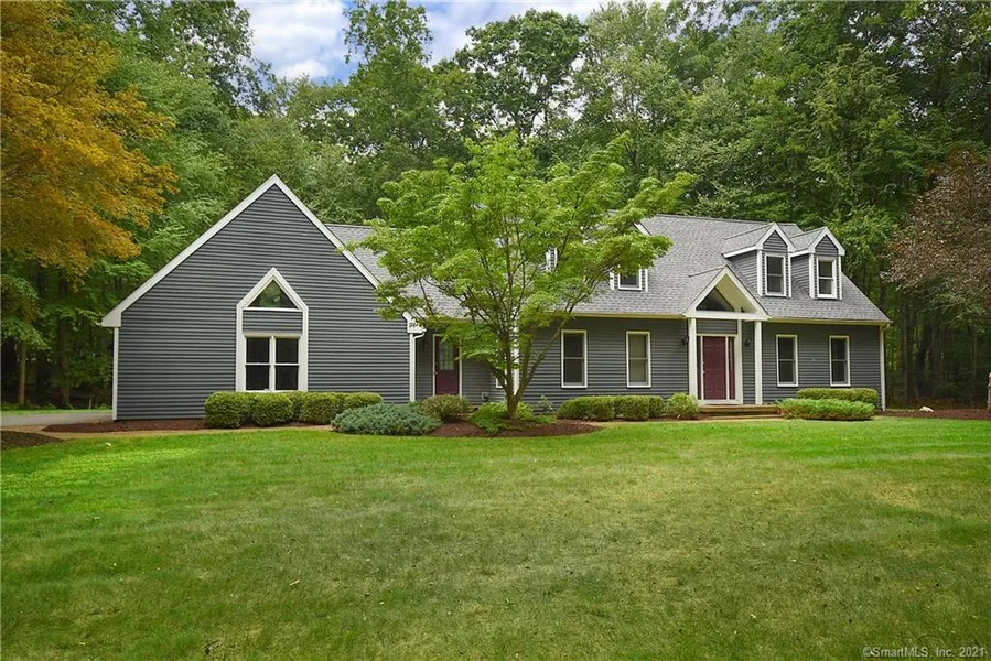 Spacious, 2236 sq. ft. Cape located on quiet Tolland cul-de-sac. Situated on 1.06 acres this home is move-in ready. A lovely, paver walkway gives way to an inviting, hardwood-floor Foyer with distinctive, L-Shaped staircase. The off-Foyer Living room - and its adjacent Dining room - offer beautifully-maintained hardwood along with complementary window and door moldings. The main level also offers a private, front-facing Office, a tile-and-granite, stainless-appliance eat-in Kitchen, and a floor-to-ceiling-fireplace-equipped, hardwood-floor Family room with French door access to rear deck. There is also a Mudroom / Laundry room, along with a nicely-finished half bath. The upper level includes a large Master bedroom with dual-sink Master bath, 2 additional bedrooms (1 with a walkin) and an updated full, common bath. The grounds include sweeping walkways, tasteful landscaping, and a very private backyard.