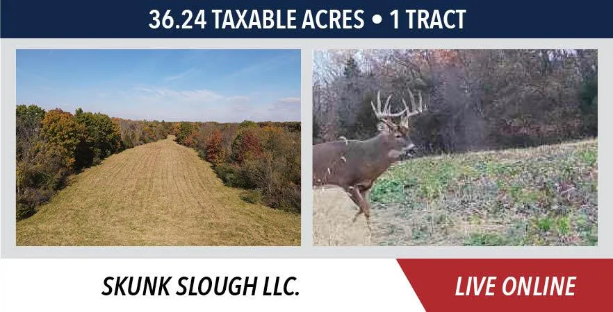 The Skunk Slough Farm will be sold in 1 tract on a price per acre basis based on the taxable acres.