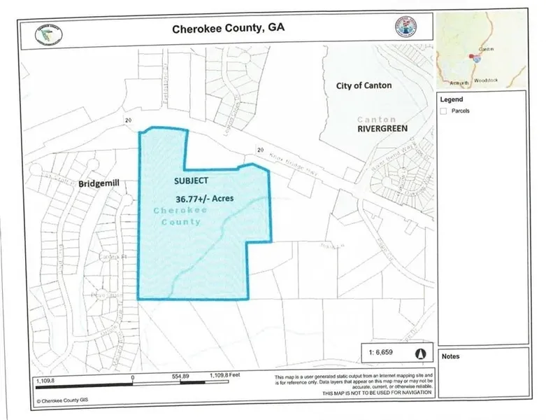 An appointment to show must be set up with listing agents prior to all showings. 36.77 +/- Acres in Prime High Traffic Location with over 450' Frontage Along Ga. Hwy20 just West of the fast-growing City of Canton. Great Location for Commercial and/or Residential Development. Located 1/2 mile West of the Signalized Intersection at SR 20 (Knox Bridge Hwy), Butterworth Road & Rivergreen Avenue. Property adjoins the Bridgemill mixed-use development and has easy access to I-575 Exit 16 and 14. Sewer is located on the North side of Ga. Hwy 20 near the property. Look for sign on property.