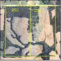 82 total acres. This tract has a large bottom field on it with some additional open crop area along the south side and in the southeast corner. The balance of the tract is made up of wooded creek banks, draws and patches of mature timber.