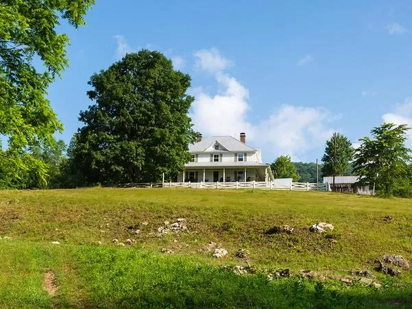 Secluded farmhouse on 360 acres in Rich Valley of the Blue Ridge Mountains. This gentleman's farm includes 2.7 miles of land on the banks of the North Fork Holston River, a quaint two-story farmhouse, and seven outbuildings. Selling at Absolute Auction Regardless of Price!
