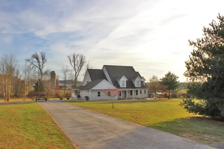 Nice 1 1/2 story home sitting on 6.4 beautiful acres, mostly vinyl fenced with a pond. Home features 4 possibly 5 bedrooms, fireplace in great room, large master bedroom & bath, large kitchen w/ breakfast area, formal dining room, wrap around covered porches, 2 car garage plus a large detached garage that joins a very nice barn with 5 horse stalls, tack room & wash room, covered attached shed for equipment. Awesome location, less than 15 minutes from town!