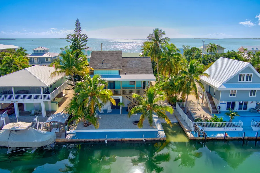 Turn-Key, canal-front Summerland Cove Isle sanctuary with private boat ramp! This gorgeous, recently renovated home boasts modern finishes and enviable deep draft boating within minutes! Upon entry, the spacious floor plan is welcoming and flooded with natural light. An updated kitchen features abundant storage, new stainless-steel appliances, quartz countertops and custom tile backsplash. The large kitchen island with additional counter seating lends itself to entertaining. The kitchen flows seamlessly into a spacious living room, with soaring tongue and groove cathedral ceilings and generous bonus loft space. The primary suite enjoys privacy from the rest of the house in an upstairs private wing, boasting a large walk-in closet, en suite bathroom, and private balcony with Open Water Sunset Views. On the main floor, both sizable guest bedrooms offer access to the expansive wrap-around porch, which features both Canal Views and Partial Open Water views, ideal for entertaining. Additional updates include new luxury vinyl flooring, interior/exterior paint, vanities, fans and light fixtures, new solid soffits, roof and electrical throughout. Outside, this well-maintained property offers a built-in fire pit and generous concrete seawall with fillet station. The private boat ramp is truly a rare find, providing easy access for small water crafts, paddle boards and kayaks. The attached garage boasts high clearance for storing an RV or trailered boat. An additional downstairs storage space provides room for storing tools and equipment out of the elements. This fantastic property is nestled within an established, quiet neighborhood but just minutes to shops and restaurants in town. Don't wait, this property is truly a must-see! Call to schedule a tour today.