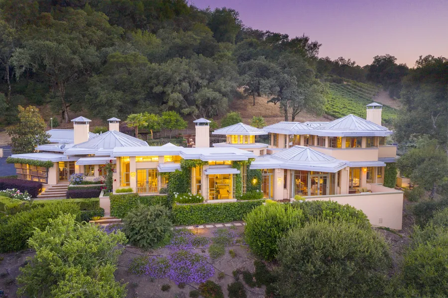Rarely do you encounter a home that so skillfully merges exquisite architecture with a stunning environment of valley oaks, vineyard rows and lush gardens. This remarkable estates Frank Lloyd Wright inspired architecture evokes a luxurious and tranquil tropical resort. Arguably one of the most distinguished properties in the area, this unique home is both a beautiful piece of art and a comfortable refuge where the indoors and outdoors merge seamlessly.