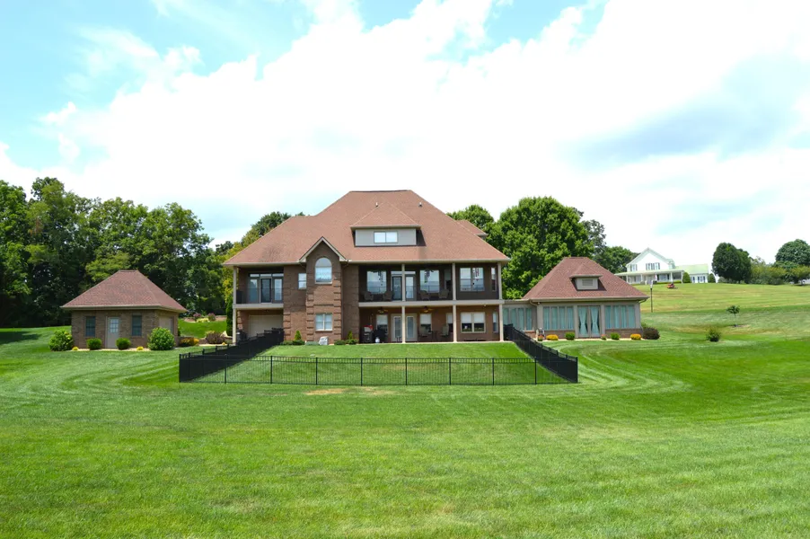 Magnificent homes with stunning mountain views like this one rarely become available, especially in prestigious River Plantation. This custom brick 4 bedroom, 4.5 bath home includes over 7,000 finished sq ft on a 1.37-acre corner lot. The sellers have tastefully updated the property while preserving its original beauty, creating an exquisite showpiece. The main floor features a generously sized living room with built-in shelves around a fireplace, and a wall of windows offers breathtaking mountain views. French doors lead to the covered back porch, seamlessly connecting indoor and outdoor living. The fully remodeled kitchen is equipped with custom cherry cabinets, granite countertops, a gas cooktop, built-in oven and microwave, and ample storage. The main level also includes a home office, a dining room with a tray ceiling, a guest bath, a spacious laundry room, an oversized two-car garage, and the primary bedroom suite. The primary suite is a sanctuary with a tray ceiling, private balcony, and a walk-in closet. The remodeled bathroom features custom cherry vanities, double vessel sinks, granite countertops, and a ceramic tile shower. Ascending to the upper floor, you'll find three large bedrooms, two full baths, a bonus room, and additional storage with access to the floored attic. The finished basement offers a large den, a recreation area with a pool table, a second full kitchen with granite countertops, and a custom bar, plus two bonus rooms. French doors open to the covered patio and a partially fenced yard. The basement also includes a full bath and a climate-controlled one-car garage/workshop with ample storage. In 2019, a brick storage building and a sunroom were added to the property. If you desire a luxurious home in a stunning setting, this residence offers elegance and an exceptional living experience. All information taken from a third-party source (courthouse/tax records) and to be verified by the buyer/buyer's agent.
