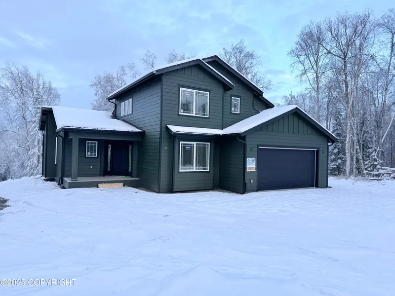 This 2,081sf NEW home is situated on a peaceful .92 acre lot. Thoughtful design & custom touches throughout create a warm yet modern feel, from the open-concept living spaces to the stylish finishes. The private primary suite + 3 more bedrooms provide plenty of room for family or guests. The attached garage has plenty of room in it. Quartz counters, Luxury vinyl plank, wood stove & in floor heat. Home does qualify for the Alaska Housing Finance $10,000 New Construction Rebate should buyer chose to apply for it.
