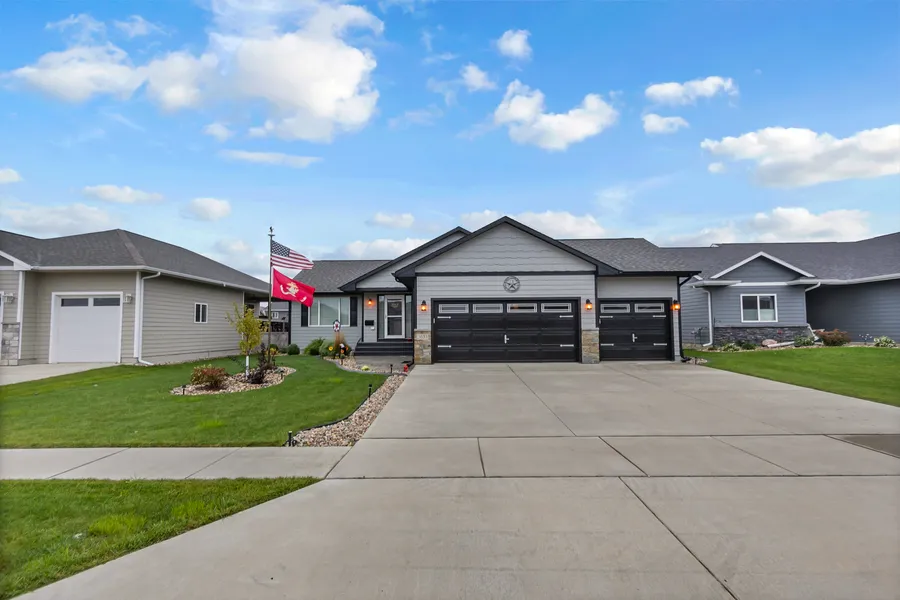 This impeccably maintained newer home blends quality craftsmanship with everyday comfort and ease. Step inside to soaring vaulted ceilings and an inviting open layout that feels bright and spacious. The kitchen is a true centerpiece, featuring a gas stove, large breakfast island, and ample cabinetry—ideal for both cooking and entertaining. The main level offers two generous bedrooms, including a relaxing primary suite with a private bath. The lower level continues the comfort with two large bedrooms, a full bathroom, and a welcoming family room anchored by a cozy gas fireplace. Enjoy the practicality of laundry on both levels and a finished, heated three-stall garage. Step outside to a beautifully landscaped yard with permanent edging, a serene patio for outdoor gatherings, and an underground sprinkler system for effortless maintenance. Every detail reflects pride of ownership—offering a truly move-in-ready home that’s as functional as it is beautiful.