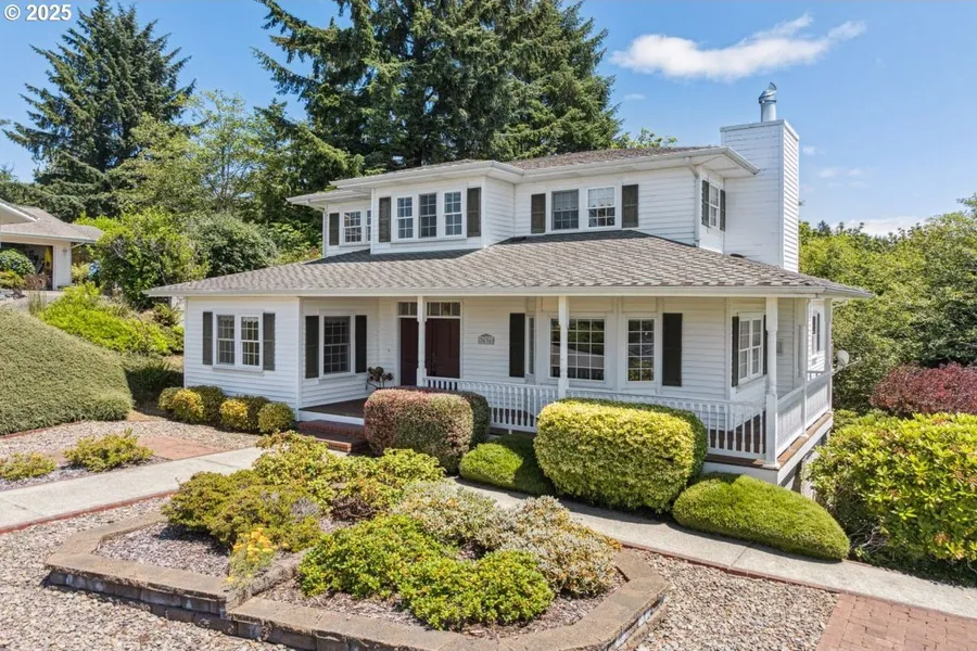 Sitting atop the gated community of Rhodo View Dunes, this custom built home is eye catching inside and out. The stately presence hits you at first sight with it's traditional shutters, wrap around porch and well maintained landscape. Step inside the double doors to the grand staircase and entryway featuring hardwood floors and built in features. There are two bedrooms on the main floor, including the primary suite and and additional bedroom upstairs with the library and 3rd full bathroom. A spacious living room with high ceilings, wood burning fireplace and plenty of windows are the centerpiece of the home. A large kitchen with an induction range, double ovens and ample cabinetry sits just off the dining room, where both face a peaceful wooded setting. The back deck takes advantage of this secluded space, with a whole different feel of outdoor living space. The garage, nicely tucked under the home as a part of a large basement, has multiple storage spaces and bonus room with an exterior entrance. Seller to include a home warranty package. This really is a must see.