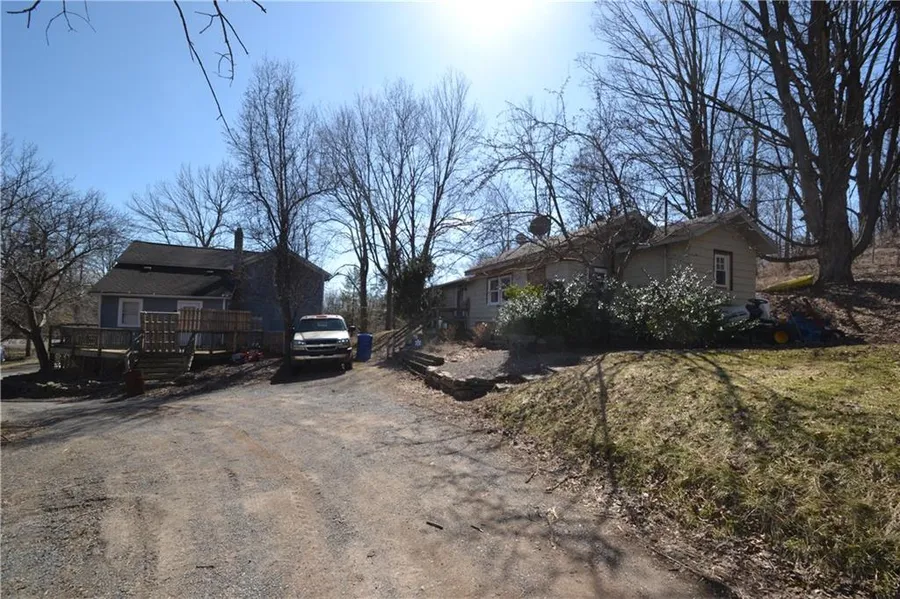 Two houses on a private 2.7 acre county lot! Main house has recent exterior paint, 150 AMP electric, bath updates, open kitchen to dining room, deck, wood pellet stove. Rented at $925/a mo. 2nd house is one bdrm, 558 sq. ft. and REQUIRES RENOVATION, rents $425/mo. (OR REMOVE SMALLER HOUSE AND CONVERT TO A PRIVATE SINGLE FAMILY SETTING!) Barn has basement, side shed with 2nd floor. Main barn roof needs major repairs. Ideal location for landscaping or contracting equipment and material storage. Cash or portfolio mortgage only.