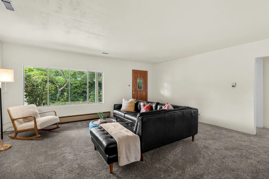 This two-bedroom home offers 1,296 square feet of living space on an oversized city lot. The property includes additional space that can serve as a home office or third bedroom, providing flexibility for various living arrangements. An unfinished second bathroom offers additional potential for expansion.