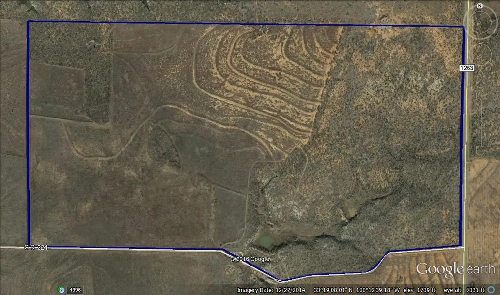 364+/- acres 12 miles north of Aspermont, TX on the west side of FM 1263 with additional frontage on County Road 221. Nice mix of native pasture and CRP with annual income through 2022. CRP acreage totals 198.7 acres and provides $7,060 per year through 2022. Pastureland totals 165.3 acres, mainly on the east side with small patches scattered across the property. One surface pond is in the draw of the pastureland. Rolling terrain with gentle elevation changes as well as a drop-off into the small draw crossing through the east side. Electrical service runs along both public roads.