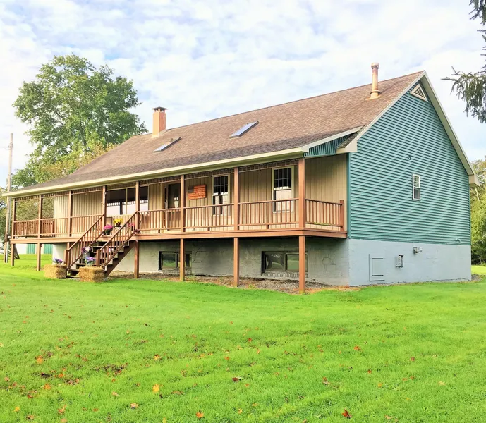 A home you won't have to worry about and the farm you had dreamed of as a kid. All BORDERING STATE LAND. There is even an enormous STOCKED POND to discover and have all to yourselves. Located only 3 hours 20 minutes from the GWB, with acres for the dogs to run and sunrises to wake up for. Custom built in 2002, the home boasts a fantastic living area and entertaining space anchored by a wood burning, floor to ceiling STONE FIREPLACE. Along with high ceilings and skylights, the living area also features an office nook. A well maintained kitchen is flanked with a custom rough-edge wood counter and also offers stainless appliances, plenty of counter space and a great view from the kitchen sink. Wide center hall contains large closet storage and plenty room to kick off your boots. At the North end of the home you'll find two bedrooms with big closets and a large LAUNDRY area with full bath, making it easy to get the dirty clothes in the wash and yourself showered without tracking dirt everywhere. At the South end of the home you'll find a large master bedroom with en-suite full bath and well-lit walk through closet with tons of storage space. You'll find even more storage in the basement where several large spare rooms have been created. This area could be employed as a home office, a gym, maybe a game room or home theater. A second kitchen can also be found in the basement, though it still needs further finishing it could be completed for a variety of purposes like canning, processing, a prep kitchen or utilize as part of an hobby studio space. Furthermore, the home is adorned with full length covered decks on both the front and the back of the house overlooking the lawns and fields, and beyond to the barnyard. Standing proud, are two very large well built wood sided barns. The main barn could be outfitted for variety of purposes and includes a fully enclosed spray booth, frost resistant spigot, large garage doors at either end, raised storage and shelving. The main barn also has lean-to storage running the length of both side of the barn. The second barn is being utilized as a four season workshop. It is completely spray foam insulated on all the walls and ceiling and has large hayloft above. This homestead could truly suit any number of purposes. Whether developing it further into an equestrian estate, a wedding venue, vacation home or hunting camp due to the enormous white tail bucks on the land. There is even and elevated wood sided blind in the field. Across the road is an older bonus barn too. This farm could also be great for raising chickens, alpaca, goats, sheep or turn it into a crop farm like beer hops. Trails running through the property can be enjoyed year round either by hiking, horseback riding, snowmobile or ATV. On your way back from your 61+ acres you can pick some apples from the huge apple tree for some homemade apple pie.