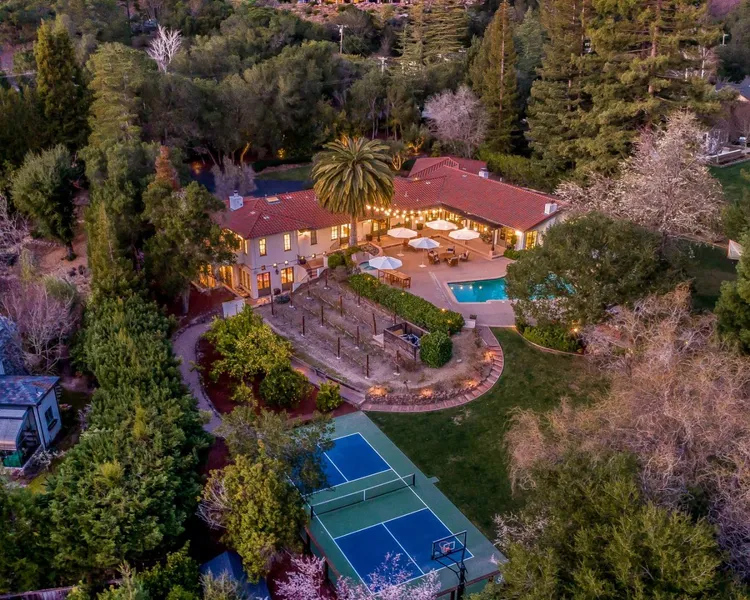 Estate living awaits on more than one acre in the heart of the sought-after Westridge area. Entire property has been transformed with sophisticated appeal that blends high-end modern luxury with a nod to the original Spanish architecture. Towering, all-white beamed ceilings enhance the dimensions of the public rooms, which include an expanded and reconfigured great room at the rear of the home - a tremendous venue designed for indoor/outdoor living. Personal accommodations, all found on the main level. Primary suite is absolutely stunning with a private office and two way fireplaces hared with the bedroom, exceptional wardrobe space, and a five-star bathroom finished in the most gorgeous marble. Plus, it opens to all the resort-like amenities on the rear grounds. Location, like-new luxury, pool and pickle ball/sport court, and a most private setting - it's all here in the heart of Westridge.