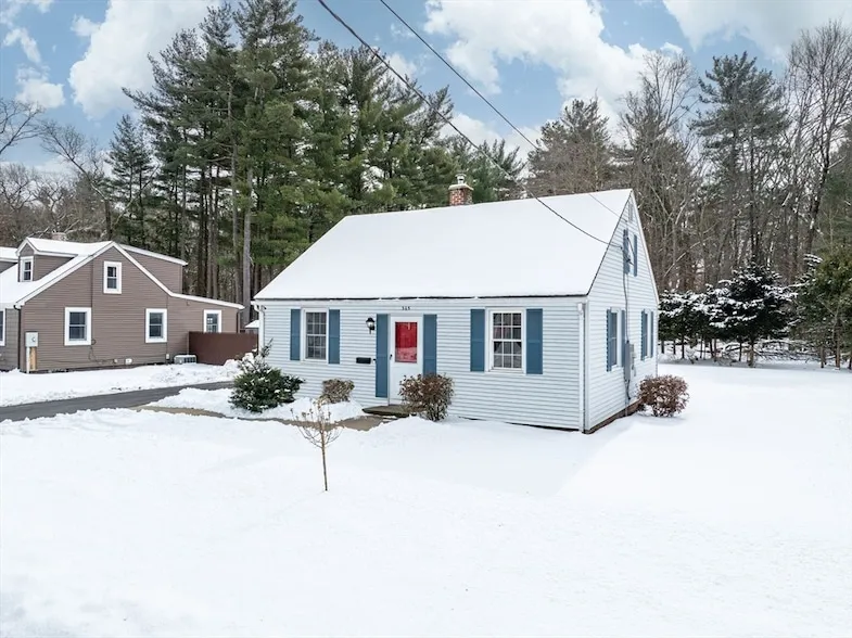 Adorable & Affordable! Solid home with vinyl siding, replacement windows, updated bath and kitchen updated in "94 APO. Extra-large lot with wooded area makes this home private in the back (.43 acre is in Enfield, CT and .74 acre in MA). Cozy home offers 2 bedrooms & comfortable living room with high ceilings, Overhead lighting fixture in LR remains, both bedrooms have cedar lined closets. Handicap friendly access to & from basement on installed stair lift. New all electric Heat pump heating system installed by MassSave Oct/2023. Ductwork was re-insulated and expanded & extra attic insulation was also added. All main level flooring replaced Sept/2023 except in full bath. A large stand-up attic may add opportunity to expand. Basement was waterproofed - South wall treated with new surface coat by Advanced Basement Systems 2023. Detached garage is deep with room to park and store lawn equipment. Start or downsize here, in a very convenient location. Showings begin Sat Feb 14th, at Noon.