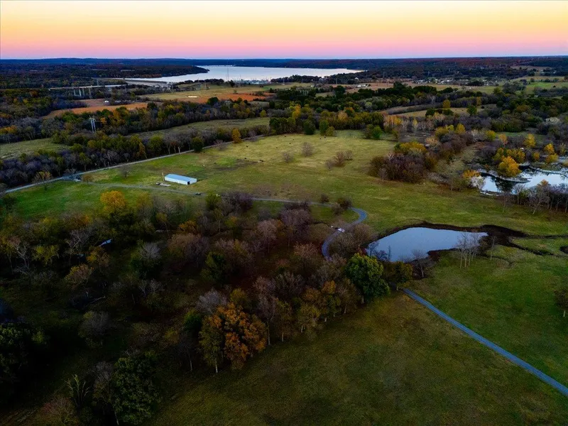 EXQUISITE 80 +/- ACRE CATTLE RANCH WITH CUSTOM HOME, BARN WITH LIVING QUARTERS, AND POND IN LOCUST GROVE--LESS THAN 3 MILES FROM US-412 AND HWY 82! This exceptional ranch on 80 +/- acres offers a unique blend of functionality, comfort, and scenic beauty. The 2,208 sq. ft. home features 3 spacious bedrooms and 2 bathrooms, showcasing vaulted ceilings, hardwood floors, and granite countertops throughout. The chef-inspired kitchen boasts a large pantry with dual access, while the oversized laundry room and abundant storage cater to every practical need. The master suite impresses with an en suite bath and his-and-her closets, and guest rooms share a convenient Jack and Jill bath. Equestrians and ranchers alike will appreciate the thoughtfully designed outbuildings, including a 30x50 farm-style barn with concrete floors, a 15' lean-to, and an apartment or mother-in-law suite, complete with full kitchen and bathroom. An additional 40x100 barn comes complete with a cool room and arena area. The property is equipped with working pens, hay barns, grain bins, multiple sheds, and fenced pasturesperfect for livestock and horse management. The land itself is a picturesque mix of treed and cleared areas, dotted with multiple ponds and crossed by cattle guards, all accessed via a charming, piped entry and quarter mile long paved driveway. An indoor safe room in the Master, 24Kw Generac generator, full metal roof, and custom touches throughout ensure lasting quality and peace of mind. Enjoy the proximity to Lake Hudson, Grand Lake, and major highways, while still reveling in the tranquility of rural living. All this, less than 2 miles from Downtown Locust Grove and only 44 miles from Downtown Tulsa. This is a rare opportunity to own a dream horse ranch in a highly convenient and sought-after location! Don't miss your chance! Schedule a private showing today!