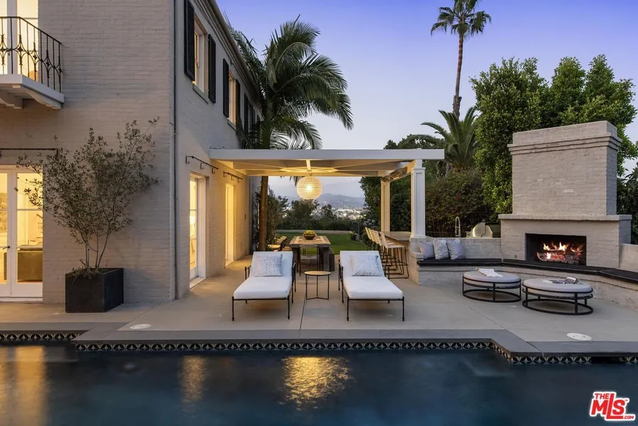 Seller just completed primary suite expansion/restoration and other work. Webber and Spaulding, architects, circa 1928. Located in prime Los Feliz, this sprawling classic Colonial Estate, shrouded behind gates and hidden from the street for complete privacy, was designed to encompass a massive character home plus huge flat yard, accented with sweeping panoramic views of the mountains and the city lights. Sunken lush courtyard entry leads to grand main front hall; opening to sunny living room with fireplace, formal dining room, library and first floor bedroom/office suite; with all rooms opening to the huge yard with original oversized French doors. Culinary fully tiled kitchen with island and stainless appliances features breakfast area and direct access to back yard; with outdoor fireplace, pool, spa and grassy yard with gourmet outdoor kitchen and semi-covered dining patio. Upstairs are 5 bedrooms plus office/gym; all connected by a wide dramatic arched hallway including an exquisite primary suite with private balcony and brand new expanded and redesigned primary bath with soaking tub, deluxe shower, fireplace and sweeping views. Massive family room with fireplace on lower floor opens to a separate section of the yard. Countless original details include built-ins, hardwood floors, classic moldings, original dumbwaiter, plaster walls and double staircases. Tons of storage in the full walk through basement and oenophile's temp-controlled wine cellar. Huge driveway plus to massive 3-car garage with direct access. Extraordinary and truly original elevated living.