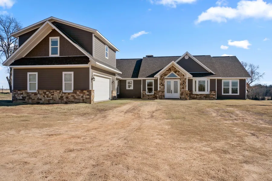 Sitting on over 55 picturesque, fenced and cross fenced acres, with a spring fed pond, yet only minutes from the heart ofMount Pleasant, this new construction home and huge barn make this property the perfect place to get away from it all. The barn has electricity and water ran to it, a large roll up door, is set up for all livestock and has individual stalls with turnouts. If a barn isn't what suits your needs, it could easily be converted to a fully enclosed shop. The home features everything you were hoping to build in your dream home... without the hassle of building! In addition to the 3 bedrooms and 4 full bathrooms, this home has a separate office space, large laundry room, walk in pantry, and a spacious loft/bonus area above the garage currently being used as another bedroom. With its first class finish out, the home boasts beautiful stained concrete floors, stunning granite countertops, high ceilings, and a stone faced wood burning fireplace. Double ovens, the gas cooktop, dual sinks, and the vast island make this kitchen a chef's dream! The great room provides ample space for entertaining guest sand features large windows that create a seamless transition between indoor and outdoor living on the massive covered patio overlooking the rolling landscape.