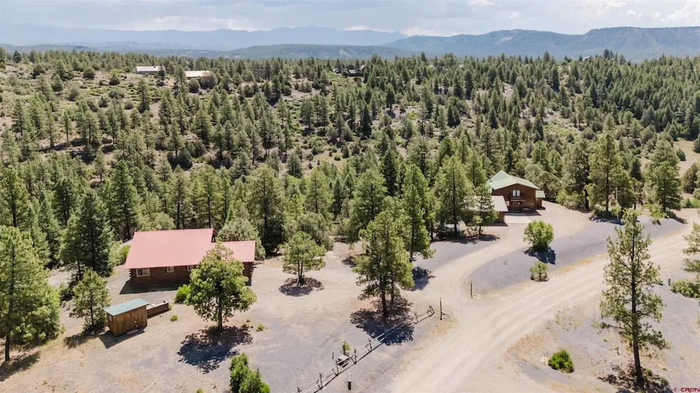 You have to check out 368 Crestone Place Two Homes on 10 Acres in Pagosa Springs! This is a unique opportunity to own two mountain homes on 10 private, wooded acres in the Pagosa Lakes area. Nestled among ponderosa pines at the end of a quiet cul-de-sac, this property is perfect for multi-generational living, a guest residence, or income potential. The home with the green doors is a 2-bedroom, 2-bath cabin features Saltillo tile floors, aspen ceilings, two fireplaces, blue pine kitchen cabinets, stainless appliances, and a versatile loft. Enjoy dual master suites, a spacious deck with valley views, and a finished 2-car detached garage. A whole-house generator provides peace of mind. The home with the red doors is a 3-bedroom, 2-bath home includes a lock-off guest suite with private patio, reclaimed wood floors, new appliances, stone fireplace with live-edge mantel, covered deck with mountain views, fenced yard, and shaded outdoor spaces. Located in Pagosa Meadows, you ll enjoy private fishing lakes, a recreation center, and trail access. Just minutes from downtown Pagosa Springs, you can relax in the hot springs, ski Wolf Creek, or explore the San Juan National Forest. SELLER FINANCING is available for qualified buyers!