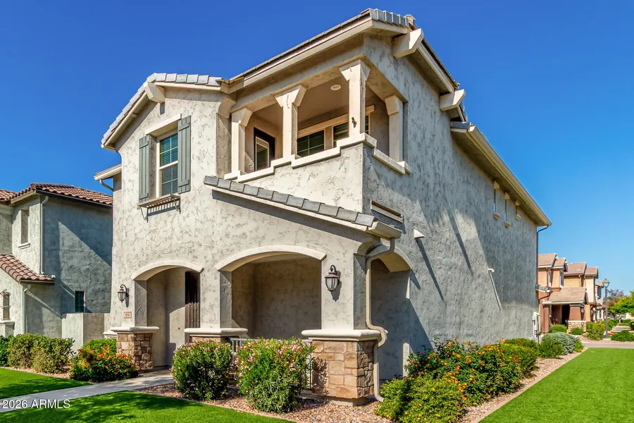 Welcome to this 2-story charmer in one of Gilbert's best communities! It's hard to find better amenities than Cooley Station: pools, pickleball, and several playgrounds. Inside the home, you'll find wood-tile floors, an open-concept layout, and high ceilings. The kitchen comes with SS appliances, granite counters, a walk-in pantry, and a large center island. Off the primary bedroom, you have your own private balcony. The loft works great as a media center, playroom, or space for hobbies. The garage includes attached cabinets for added storage. Best part: the HOA takes care of the front landscaping, so this is one of the lowest-maintenance homes you'll find!