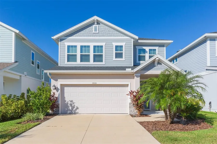 Welcome to the Kimblewick, a beautifully designed 4-bedroom, 3.5-bathroom pool home with den/office and upstairs loft with views of the pond and conservation. The main floor features a luxurious primary suite featuring his/hers dual vanities with granite counters, large walk-in closet and walk-in shower. High ceilings and natural light enhance the open-concept living area, seamlessly flowing into the chef’s kitchen with stainless steel appliances and elegant quartz counters. The formal dining room is adjacent to the kitchen for easy entertaining. Just across the hallway is the den/office featuring glass French door entry. Upstairs, you'll find three additional bedrooms, 2 full bathrooms, and a versatile loft space ideal for a playroom or just relaxing. Relax on the oasis of your covered lanai and enjoy the salt-water and heated pool all year round! The home overlooks the pond and views of the conservation beyond. Enjoy the Florida Lifestyle! Located in the heart of Wesley Chapel, with top-rated Wiregrass Ranch schools, minutes from 3 area hospitals, Wesley Chapel Premium Outlets, restaurants and easy access to I75 & 275. The upcoming Downtown area will make Wesley Chapel a walkable neighborhood with restaurants, shopping and much more!