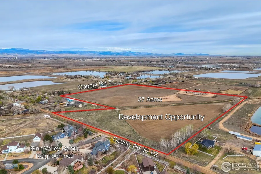 Development opportunity! 37 acres with water and sewer in the road. 5 acre Oil Lease in back corner, lease not included. South West facing and awesome back range views. With many luxury homes in the area, could be split into 1 acre lots or larger Luxury home sites. Water rights not included, however ditch water could be leased. Easy access to Hwy 52 and I-25. Rinn Valley Ranch next door. Please view video for surrounding information.