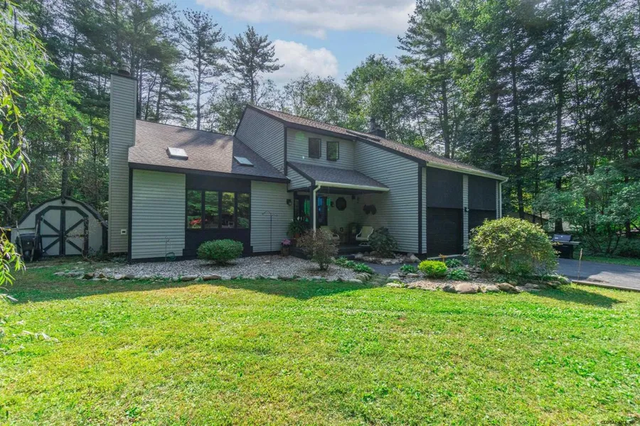 This house is perfectly nestled in amongst the trees-offering privacy w/ green space. Enter the large foyer & feel the warmth emanating from the wood fireplace in the vaulted living room. Enjoy cooking while visiting with your company seated at the kitchen table or next to the wood fireplace in the family room-while still in view. Hold holiday gatherings in your formal dining room. 2nd level has 4 bedrooms & 2 full baths-one w/ laundry closet. Spacious primary suite w/ vaulted ceiling, wood fireplace, full bath w/ jacuzzi tub, large W/I closet & an unfin. bonus space-accessed thru closet. Basement is sheet rocked, has elec. outlets, exercise room & workshop. Fenced in backyard. Roof 2015, Furnace 2019, A/C 2020. See DOCS for addt'l property improvements. 6 mi to downtown Saratoga Springs.