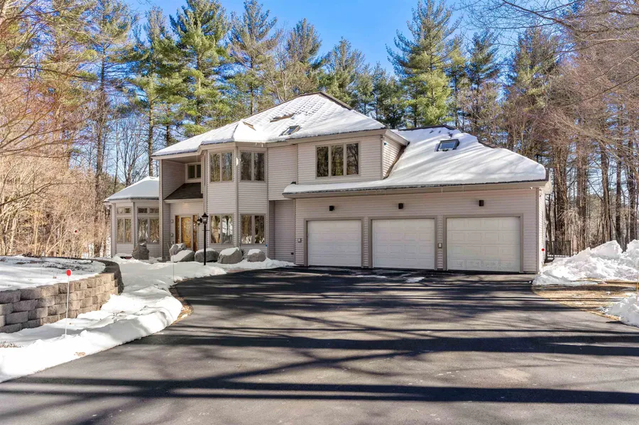 This exceptionally well built custom home is located in one of Hollis' most convenient neighborhoods to Nashua. With over 4,400 square feet of living space, this home is nestled on 2 acres with beautiful, mature landscaping. Pride of ownership is apparent from the moment you enter. Open concept design with vaulted ceilings and oversized windows create a bright and airy space. Cook's kitchen has imported granite tile floor, a gas cooktop, wall oven, granite countertops, subzero fridge, wet bar, office space, and large pantry with freezer. The dining room flows off the kitchen for ease of entertaining and can seat 12 comfortably. The living room has a double sided gas fireplace shared with the sunroom, built ins, a tray ceiling, and hardwood floors. The four season room is a show stopper - canvassed with three walls of windows, and spacious enough for two seating areas. An office, and a 1st floor bedroom with full bathroom perfect for guests, or as a potential in law. Master suite with walk in closet, seating area, and a luxurious master bath with double sinks, makeup vanity, and walk in shower. There are two additional bedrooms on the second floor with Jack and Jill bath. Front to back bonus room over garage is currently set up as an office with built-ins. The lower level has a workout room, full bath, storage, and cedar closet. A newer 800 SF trex deck with awning overlooks gorgeous private wooded backyard. This home has it all including smart home technology!