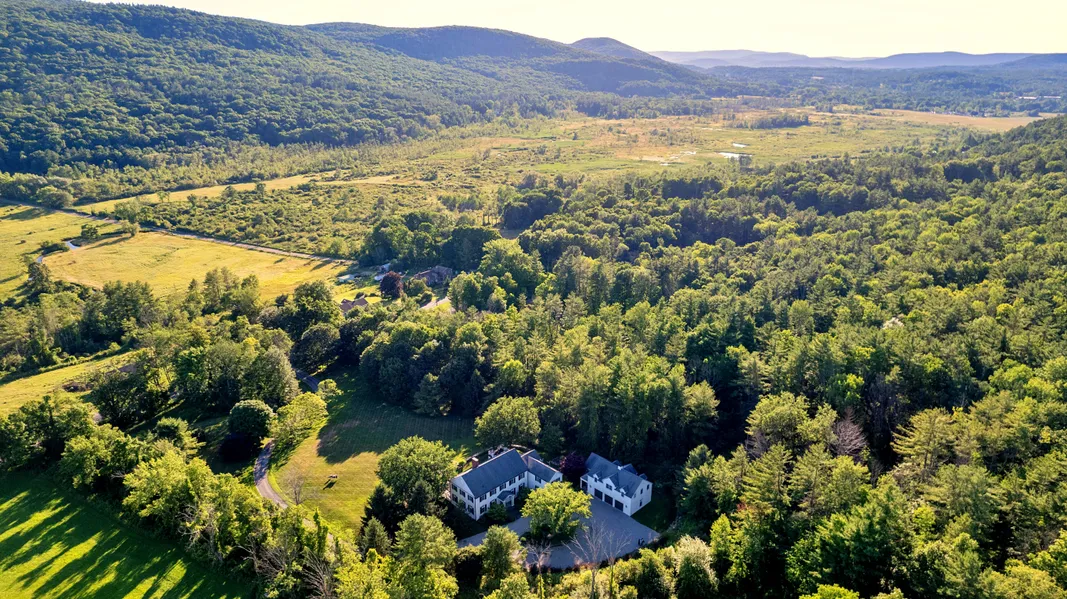 ''A Perfect Place Farm'' - a Berkshires Masterpiece on 17 Acres The one you've been waiting for...a preeminent build in a premier location. 37 Main Rd checks off the wish list: sweeping views, modern comforts, privacy, location, and colonial era character, but in an immaculately kept turnkey 2002 home. Located in Tyringham valley, one of the Berkshires' most majestic locations, 37 Main Rd is idyllically sited on the northern slope of Tyringham valley, and faces to the southwest. The expansive front porch, sunroom, and living and sleeping quarters all are positioned to track the sun's daily arc across this picturesque east-west valley. Built in 2002 by Lou Boxer, a name known locally for quality and craftsmanship, the main house is 5092 square feet, plus 1594 square feet of guest/rec space in the three-bay carriage house. The highest quality materials are found throughout. A stunning great room opens to the front porch, and features a wood burning fireplace, high ceilings, plaster finished walls, and beautiful cherry flooring. The adjacent chef's kitchen connects the great room and a striking sunroom. Cooks will enjoy the 48" Viking double oven range, Sub-Zero refrigerator and wine fridge, two sinks, a warming oven, and a butler's pantry. The sunroom is the perfect light-filled, yet cozy area to take in the four seasons. And the wood-paneled library is a show stopper, with fireplace, wet bar, Sub-Zero fridge, coffered ceiling, and dramatic mill work. An office sits conveniently next door. The upstairs features the primary bedroom and ensuite bath, a second en suite bedroom, two more guest bedrooms with a third full bath, and a sweet den tucked away in the rear of the home. A bright and spacious gym, rec/billiards room, and guest sleeping quarters are found in the stylish carriage house. Three oversized garage bays allow for multiple cars and storage. Outside, the landscaping captivates. A perfectly executed driveway meanders up from Main Rd, through two stone pillars, up the gently sloping lawn, passing stately stone stairs, and arriving at a beautifully designed circular drive, with exquisitely placed perennials and specimen trees. 37 Main is superbly located, close to all the Berkshires attractions and amenities. Only 5 minutes to grocery shopping, 7-14 min to the great (and expanding) eating scene in Lenox and Lee, and less than 20 min to downtown Great Barrington. Tanglewood, Jacob's Pillow, and numerous theater and live entertainment venues are all nearby. Pristinely kept, high speed Internet, and low Tyringham taxes.