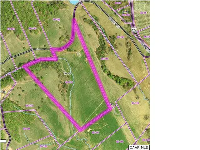 Magnificent 37+ Acre lot at Bundoran Farm featuring an elevated, level building site offering commanding views of the surrounding pastures and neighboring parcels protected by conservation easement. The mostly open parcel is sheltered on the west by stands of mature poplar and oak, and the building site sits at the edge of the pasture providing light and breeze from all sides. Private, picturesque gently rolling land & a creek all 10-15 minutes south of C'ville & UVA.