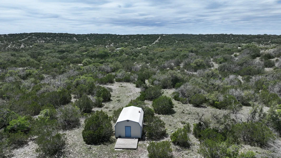 Wildlife is abundant, with axis deer, aoudad, whitetail deer, and hogs frequently seen on the property, making it an excellent choice for hunting enthusiasts. The land is currently ag-exempt, keeping property taxes low. For accommodations, a 384-square-foot cabin is included, along with access to shared water, providing a comfortable base for extended stays.