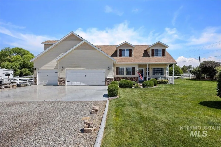 Beautifully decorated 5-bedroom, 3-bath home designed with comfort, efficiency and eco-friendly main-floor living, gorgeous landscaping, and upgrades throughout. The main level features a spacious master suite, two additional bedrooms, a home office, and two full bathrooms. The updated kitchen has brand-new quartz countertops, a modern sink and faucet, a generous pantry, a refrigerator, and double ovens. Upstairs family room perfect for entertaining, along with two more bedrooms and full bathroom. Enjoy a 3-car garage, low-maintenance vinyl siding with attractive rock accents, and a large covered back porch. A serene koi pond and mature landscaping create a tranquil outdoor retreat. The garden is truly a dream come true: arbors draped with grapes, thriving raspberry and strawberry patches, raised grow boxes, and dozens of fruit trees. Recent updates include a heat pump, furnace, air conditioning unit, family-sized on-demand tankless water heater, water pump, and solar panels! Built for sustainable living.