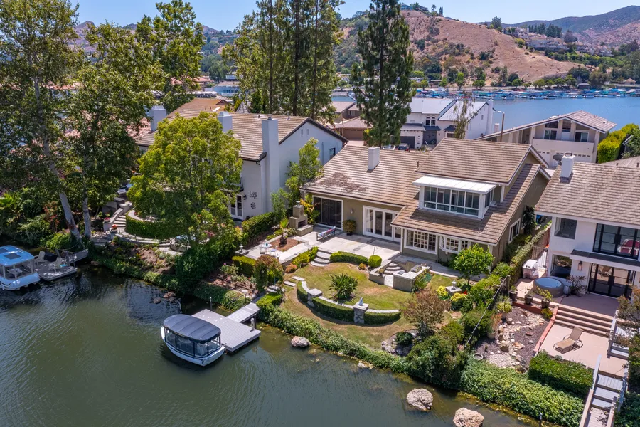 Resort style living with tranquil lake views and private dock. As soon as you enter the great room with its stone fireplace and wet bar welcomes you to wide open water views from expansive wall of windows and doors that open to the waterside patio. Cooks will love the sunny kitchen and breakfast nook with water views and opens to the patio. There are two guest bedrooms and full bath downstairs with one room opening to the waterside patio. A half bath for guests and flex space that can be formal dining or office. The luxurious primary suite enjoys the water views from its private sunroom and encompasses the entire upstairs. There are two walk-in closets and beautiful bath. Experience the lake on the wonderful patio with fireplace, BBQ center, grass and gardens as you stroll to your private dock. Enjoy all Westlake has to offer from this ideal location. Next to the community greenbelt, dining at the landing or join the private tennis club just up the street.