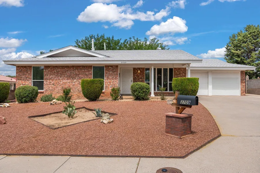 Welcome to this cherished one-owner home with a beautiful covered front porch and expanded driveway. Step inside to wood and tile floors, raised beam ceilings, and skylights that fill both living rooms with natural light. The kitchen is a delight with granite counters, gas cooking, and windows overlooking the landscaped backyard. Gather around the cozy fireplace with its classic brick hearth. Enjoy outdoor living on the large covered patio in the fully landscaped yard with bubble drip system. All this, just moments from John Baker Elementary and Holiday Park.
