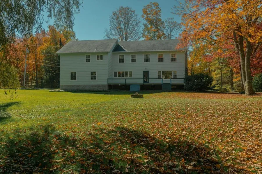 This spacious 5-bedroom colonial sits in a serene country setting with a babbling brook on the land. Best yet, it is situated on a town-maintained, paved, dead-end road. The house has been well kept by the current owner with improvements such as a new roof, refreshed paint, new well pump etc. The home has an in-law suite or apartment for friends, Airbnb or simply for use as an extension of the house to make a 5 bedroom single family residence. The entrance allows for separate access if you would like to utilize the in-law suite. The spacious living room of the main home boasts a gorgeous fieldstone fireplace, hardwood floors and plenty of natural light. Spacious, roomy deck on the back overlooking the nicely manicured lawn which leads to the small brook. There is a large, heated, attached garage to park out of the elements. Brand new oil tank recently installed. This is a beautiful home in a great location, offering peace and quiet. Yet, it is less then 5 minutes to the village of Jacksonville for stores, a restaurant and a bakery. Another 20 minutes and you can reach Mount Snow or Lake Whitingham.